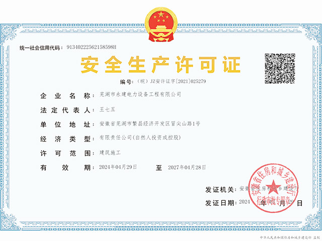 當(dāng)前位置:首頁(yè) > 榮譽(yù)資質(zhì) > 安全生產(chǎn)許可證